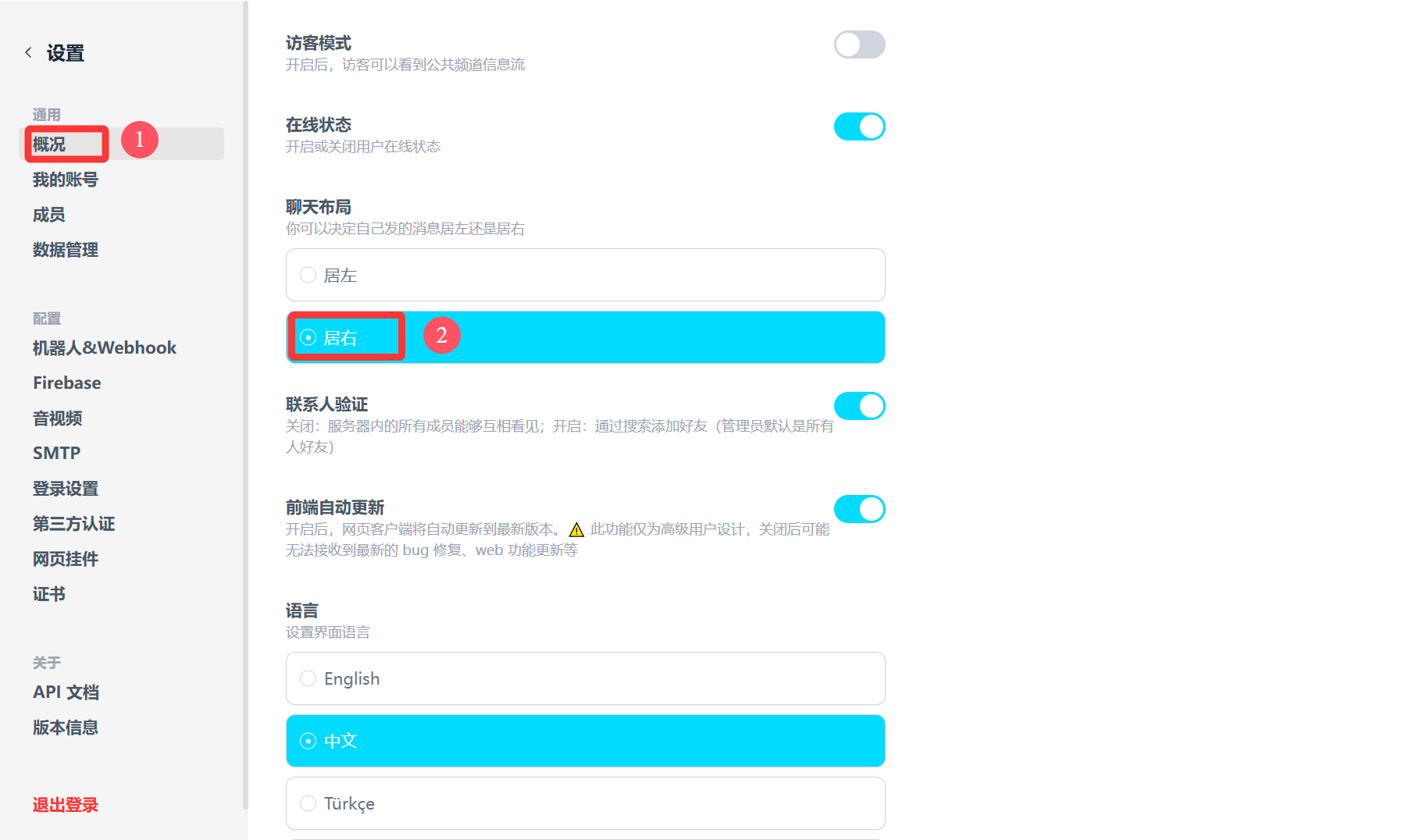 默认情况下,VoceChat 的消息可能全部靠左对齐。如果您习惯像微信或者 Telegram 那样“自己的消息靠右”,可以在 设置 -> 概况 中调整布局偏好。