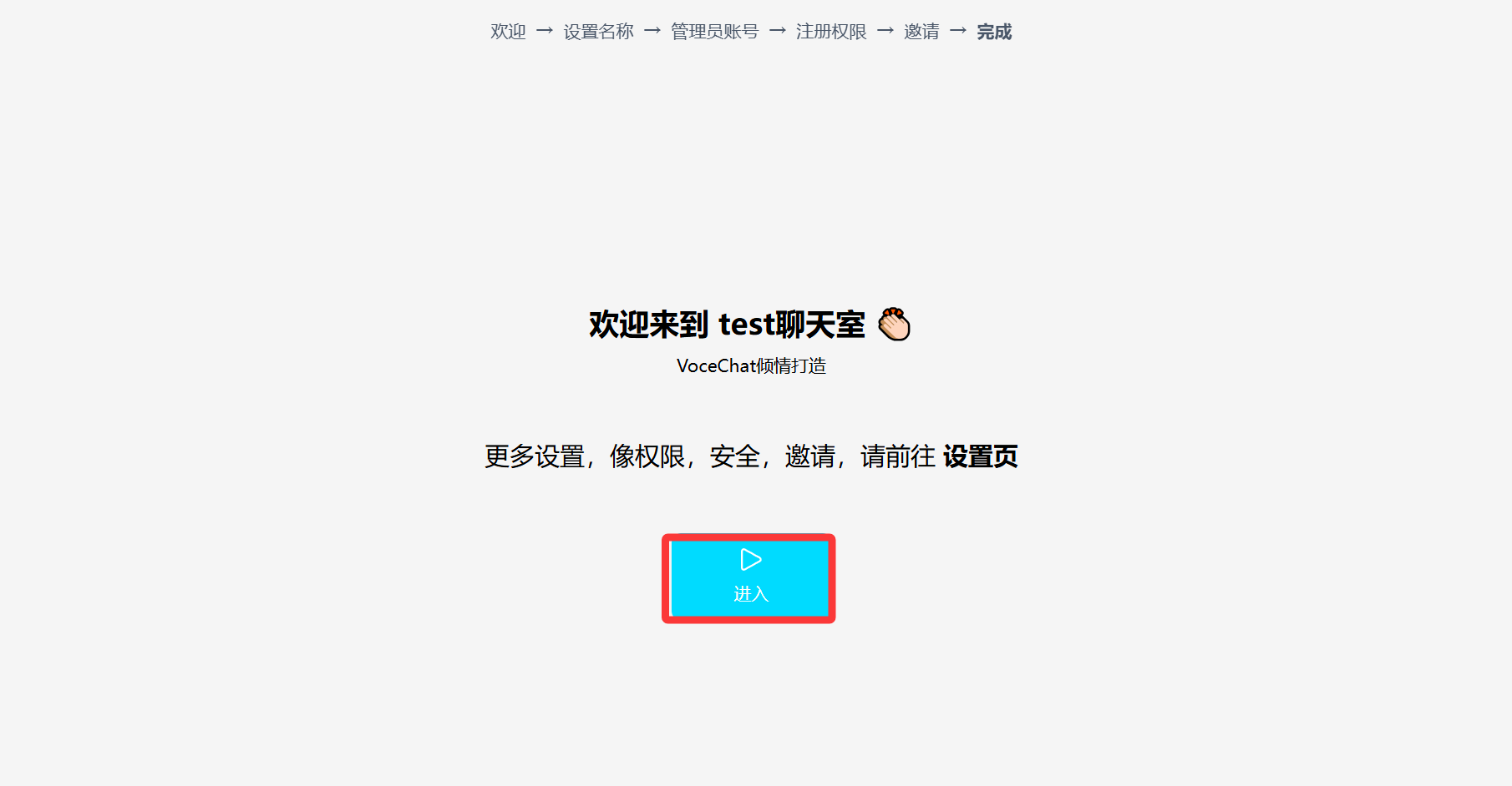 到这里聊天室就配置完成了,点击按钮进入聊天室。