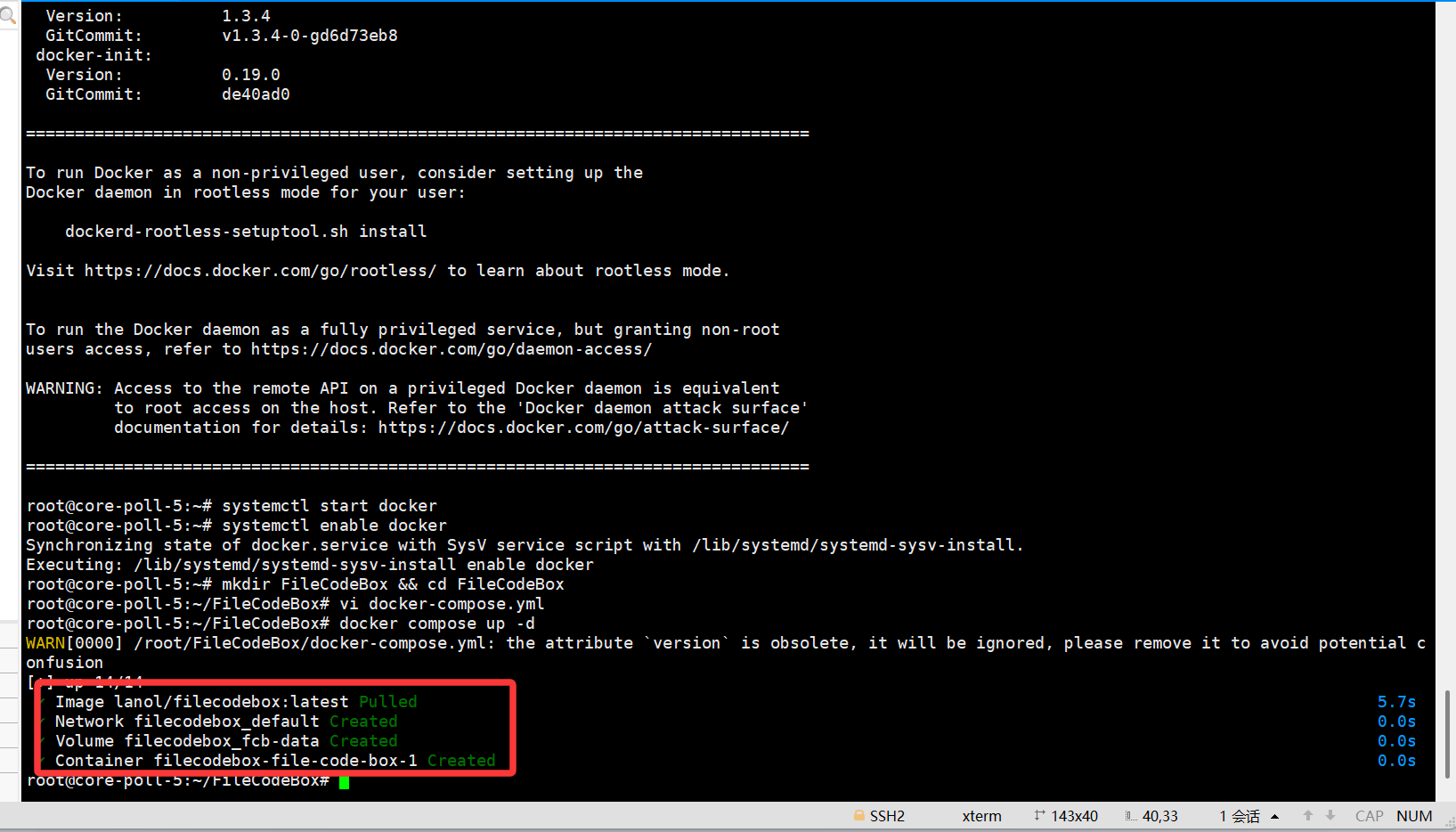 FileCodeBox 需要用到Docker,本部分将一并完成 Docker 环境的安装。