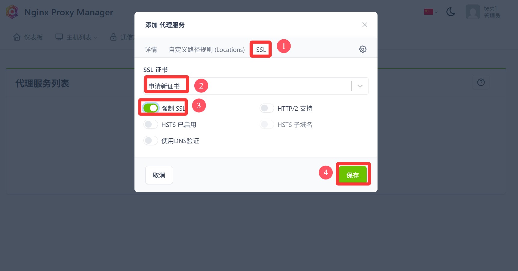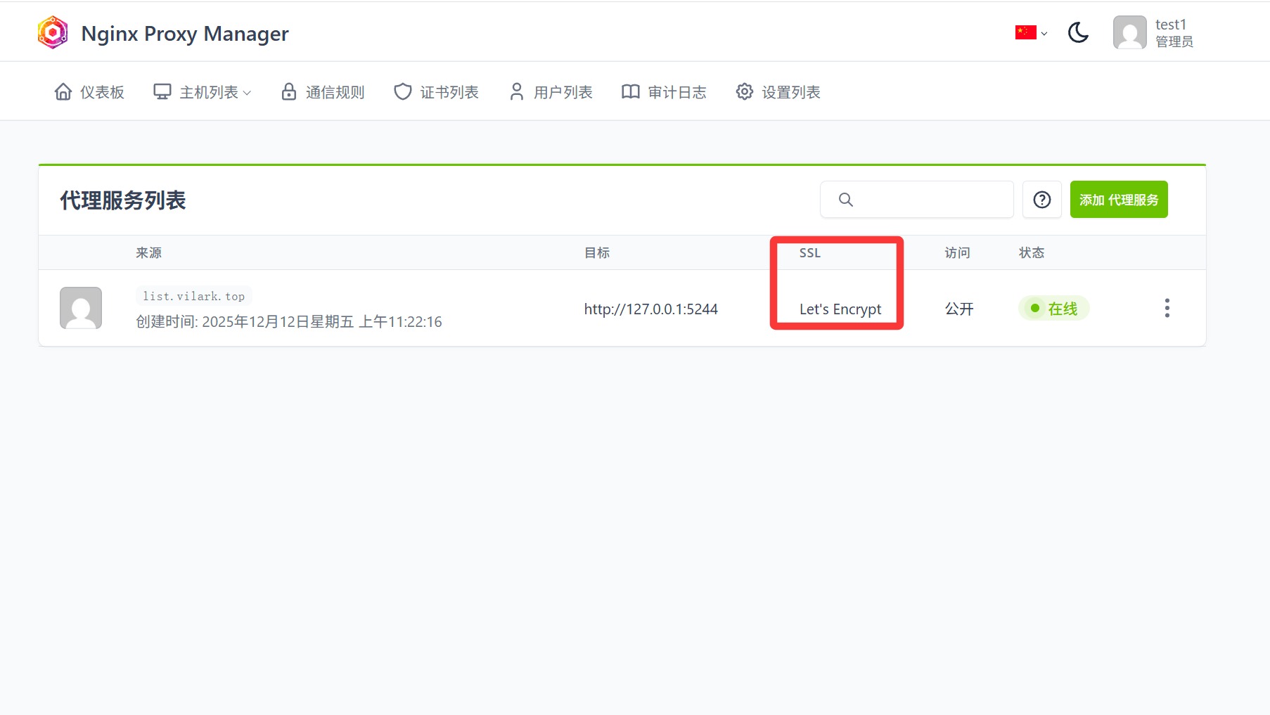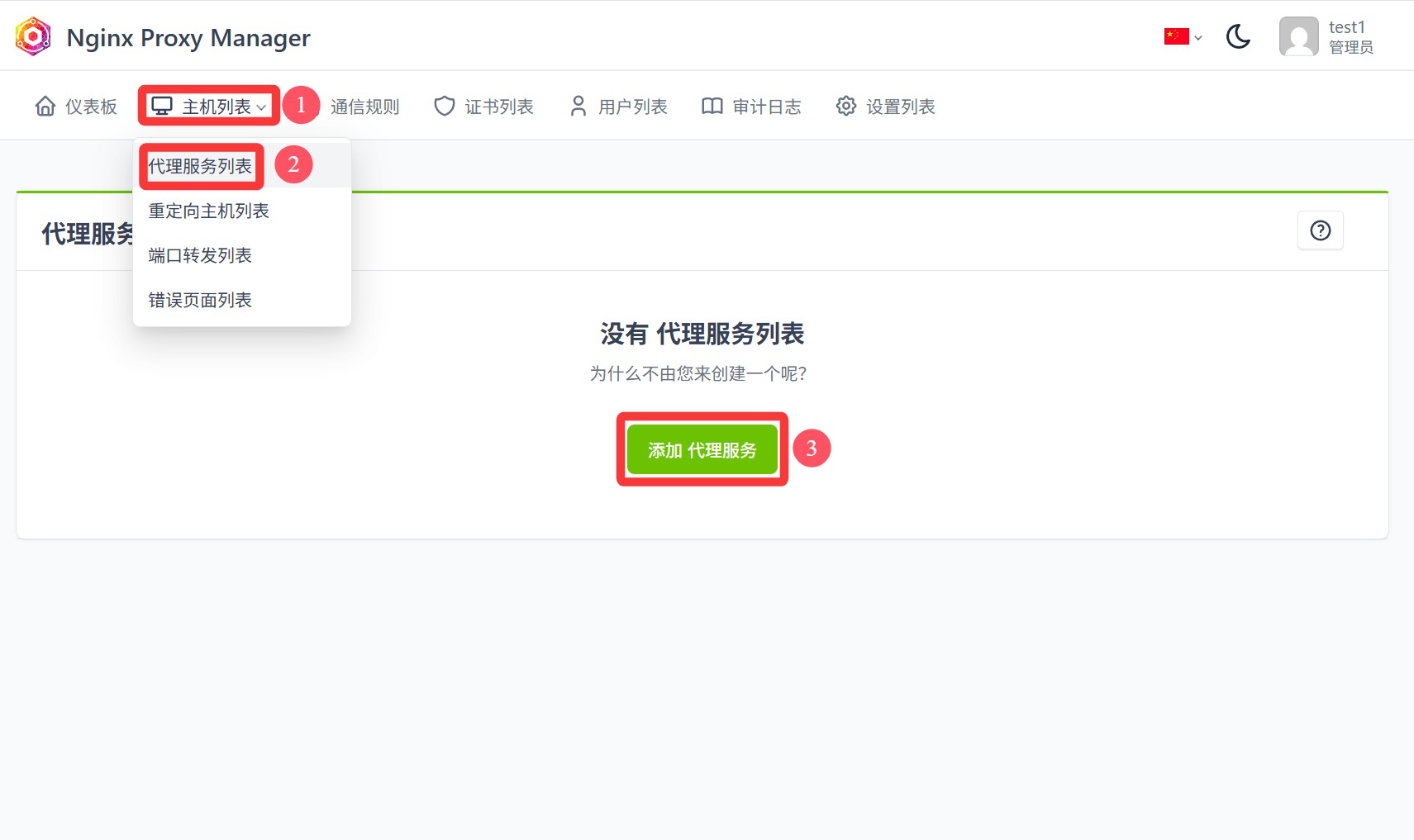 Nginx Proxy Manager现在支持中文,可以在右上角直接设置。