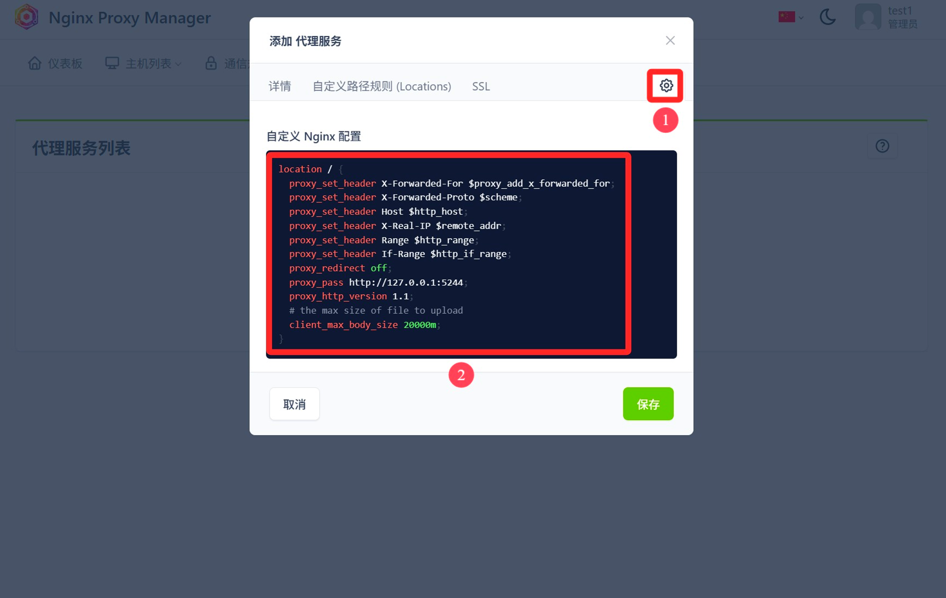 因为我们要反向代理的是 OpenList 访问地址,所以要添加以下额外参数,处理文件传输和大文件下载(如果你只是反向代理普通网页,不需要此操作)。